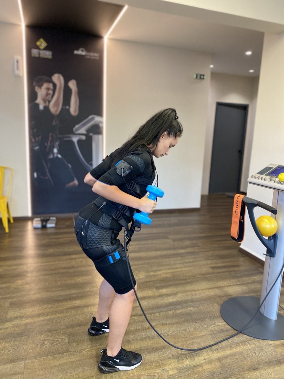 Οι ηλεκτρικοί παλμοί δραστηριοποιούν ακόμα και τους εν τω βάθει μύες που δύσκολα μπορούν να προσεγγιστούν με συμβατικά θεραπευτικά μέτρα. Η ειδική εκγύμναση ολόκληρου του σώματος με EMS είναι μια ιδιαίτερα αποτελεσματική συνολική εκγύμναση που εξοικονομεί χρόνο και επιτυγχάνει εκτεταμένα θετικά αποτελέσματα στην υγεία.