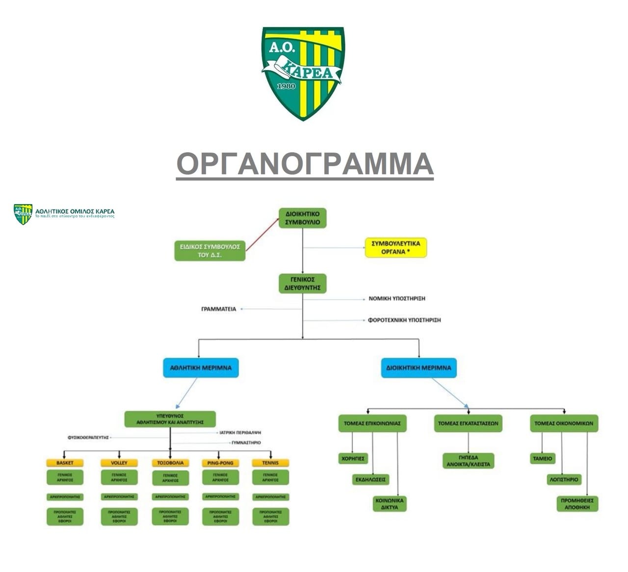 Τα μέλη του Δ.Σ. και όσοι έχουν ειδικούς ρόλους μοιράζονται κοινό σκοπό. Ξέρουν τι είναι σημαντικό και κατανοούν τον ρόλο τους στην επιτυχία του ΑΘΛΗΤΙΚΟΥ ΟΜΙΛΟΥ ΚΑΡΕΑ.