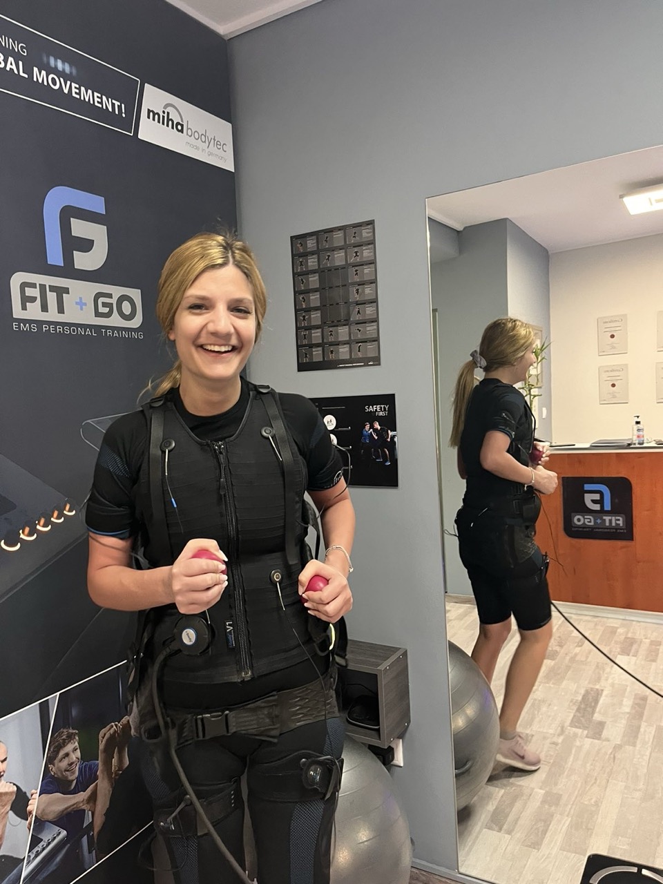 Το EMS Fit & Go Personal Training studio διαθέτει τον επίσημο γνήσιο τεχνικό εξοπλισμό του κατασκευαστή Miha Bodytec, καθώς και τις ανάλογες πιστοποιημένες αντιβακτηριδιακής σύνθεσης, υψηλής ποιότητας στολές προπόνησης.