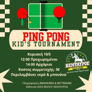 Τουρνουά Ping pong μικρών ηλικιών Θεσσαλίας