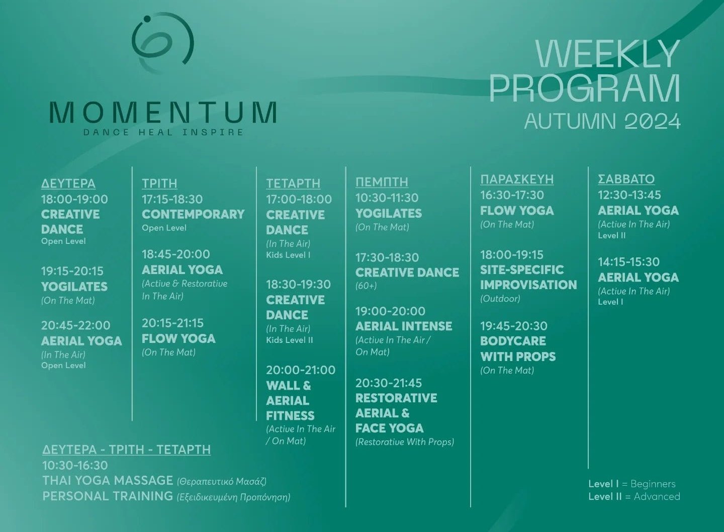 Εβδομαδιαίο Πρόγραμμα Χώρου για Φθινόπωρο 2024