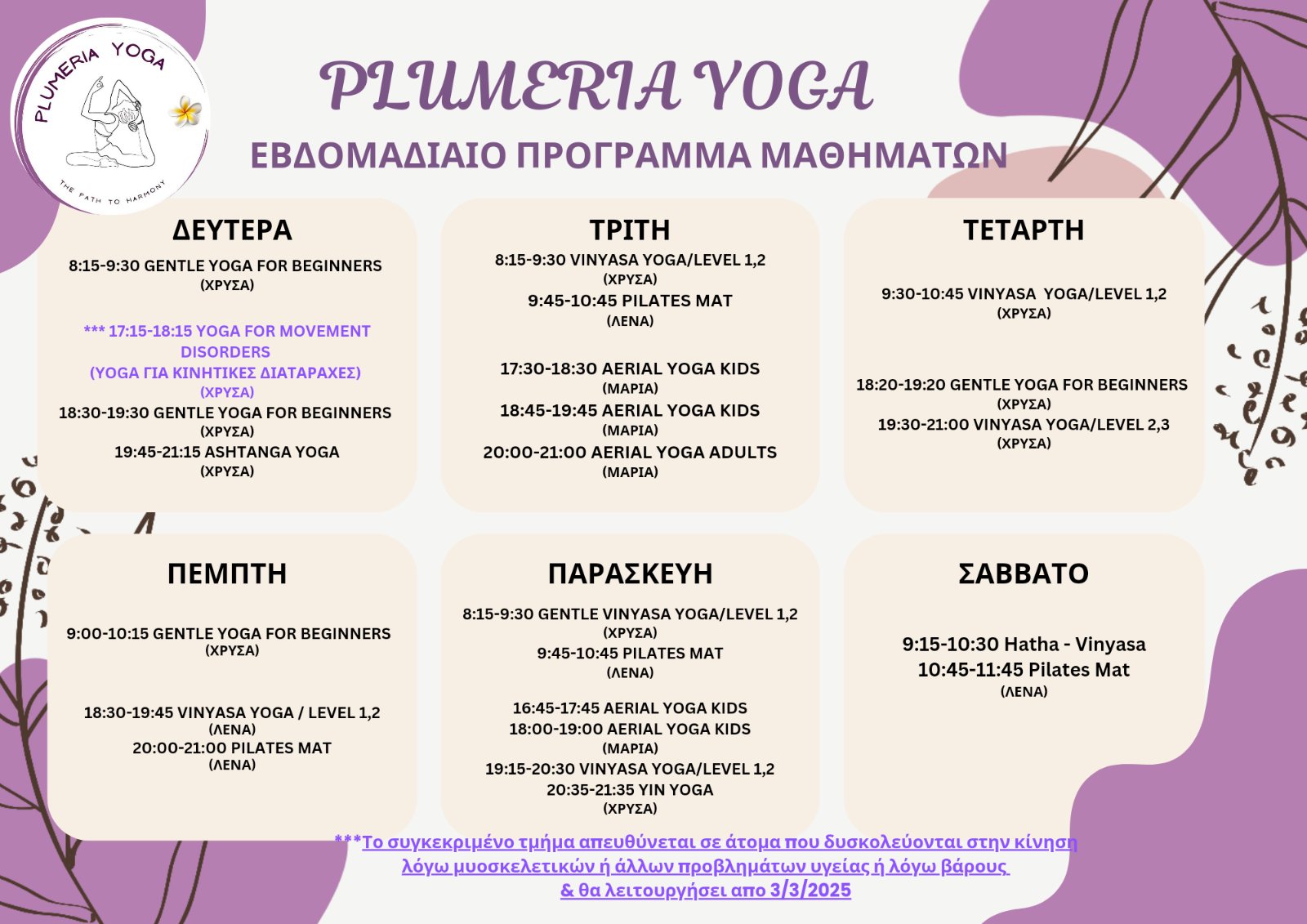 Σας υποδεχόμαστε στο χώρο μας, ιδανικό για ευχάριστες συνεδρίες Yoga, Pilates, Διαλογισμού & θεραπειών! Δείτε το εβδομαδιαίο πρόγραμμά μας & επιλέξτε την ώρα που σας βολεύει!