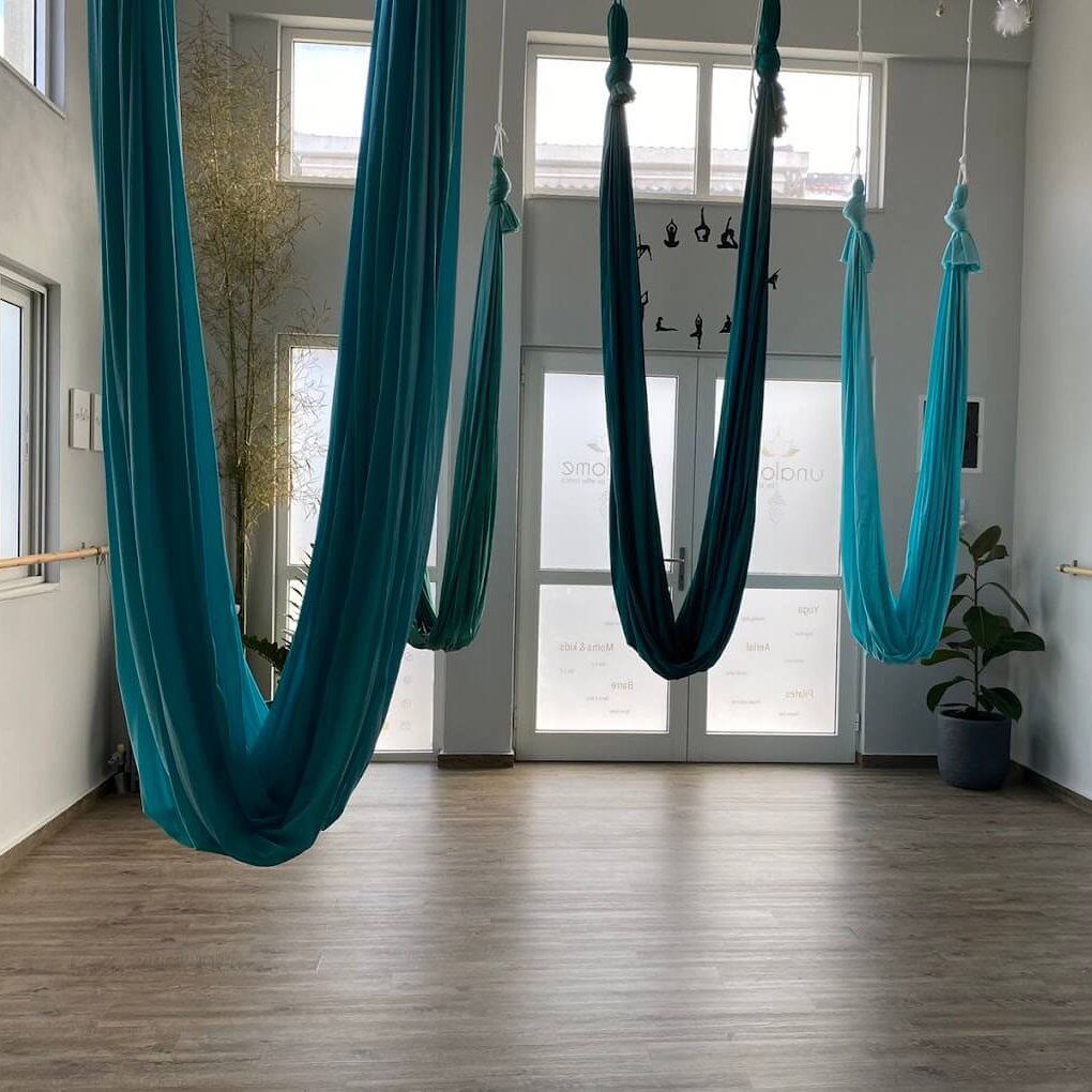 Η Aerial είναι ένας υβριδικός τύπος άσκησης που συνδυάζει αναλογα με το είδος που επιλεγουμε είτε παραδοσιακές στάσεις γιόγκα, είτε ασκησιολογιο πιλατες είτε ακροβατική με τη χρήση εναέριας αιώρας. Στον χώρο μας δουλεύουμε αυτά τα τρία είδη μαθήματος αεριαλ (aerial yoga stretching, aerial fitness Pilates, aerial acro). Ελάτε να πετάξουμε μαζί, να ξαπλώσουμε μέσα στο προστατευτικό κουκούλι και να απελευθερωθούμε από την αίσθηση της βαρύτητας.